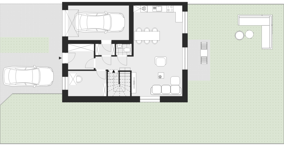 - Miejsce/a postojowe:: garaż w bryle budynku